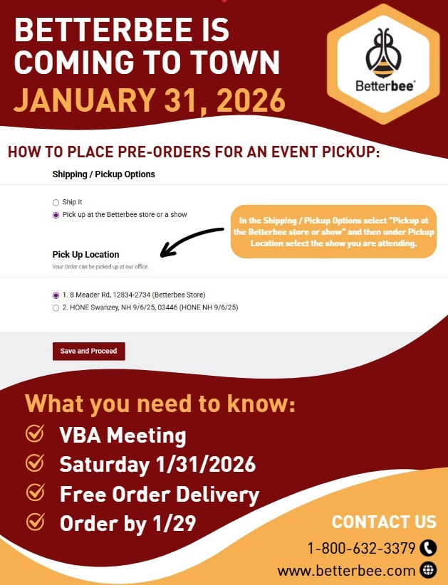 Betterbee (orders can be delivered to the meeting to save on shipping)